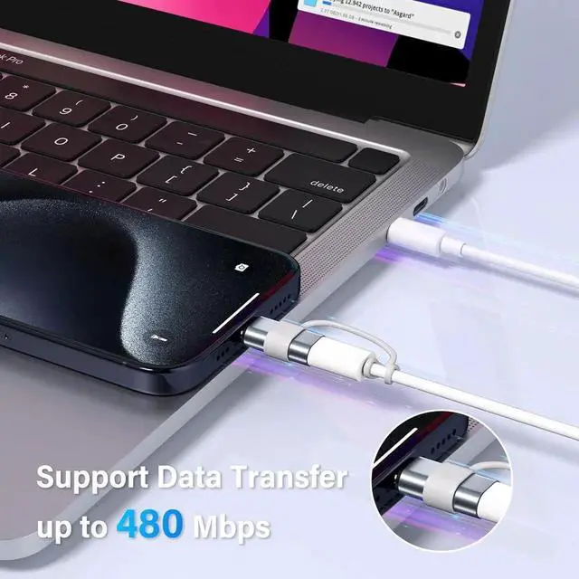 Charging Data Sync: iPhone 15/16 Pro/16 Pro Max/Plus charger adapter (4Pack) The lightning to usb c adapter support charging and the data transfer speed is up to 480 Mbps. the usb c to lightning cable adapter has a built-in 56K pull-up resistor for safer charging. No installation requiredsimply plug and playPlug and