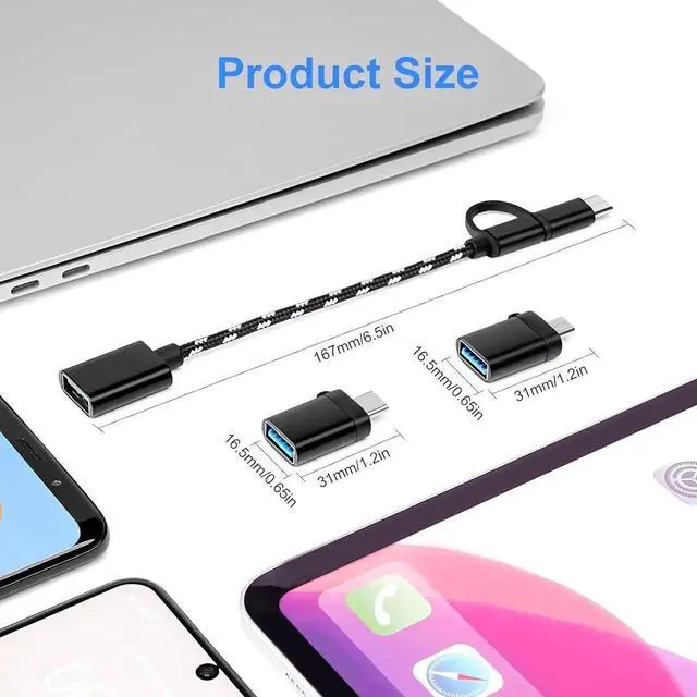All-in-One Solution: Our 2 in 1 usb OTG Adapters feature both a USB to Micro Adapter and a USB to Type C Adapter making it the perfect solution for connecting all types of USB-A peripherals. OTG adapter 3pack contains a type c/micro usb 2-in-1 adapter cable type c adapter and micro usb adapter.