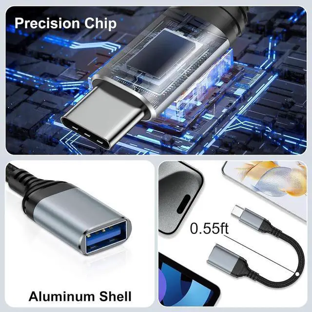 allowing you to move large files photos HD movies songs and videos in seconds and stable. Farewell to long wait. USB OTG Cable is perfect for seamless connectivity between USB-C and USB-A devices. Perfect for quick file transfer smooth HD video streaming and reliable efficient backups every time. Wide CompatibilityThe USB-C to USB 3.0 OTG Adapter works seamlessly with all