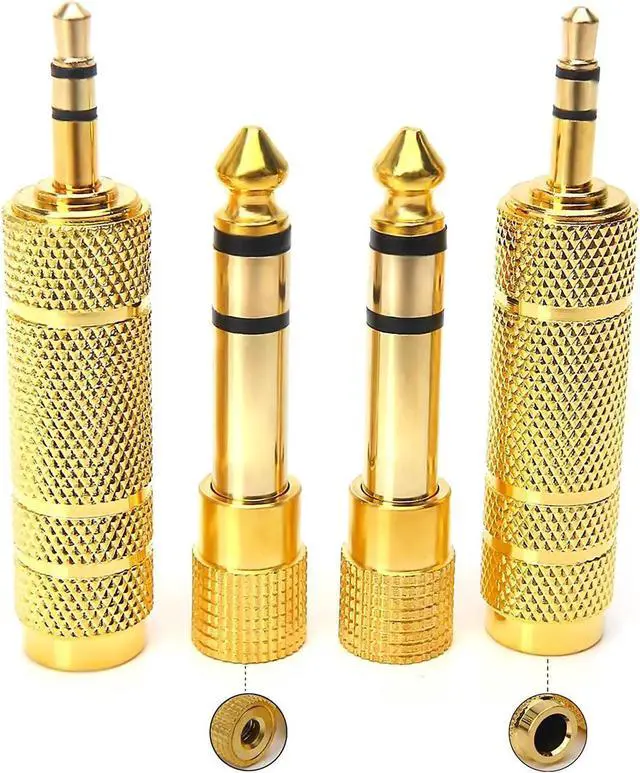 Adapter B: 6.35 mm (1/ 4 inch) male to 3.5 mm (1/ 8 inch) female audio adapter (2Pack) 6.35 mm male adaptor: amplifiers electric guitar/piano stereo system home theater devices or AV receivers with a 6.35 mm stereo jackStereo jack adapters are suitable for a 3.5 mm (1/ 8 inch) stereo port to accept a stereo cable with a standard 6.35 mm (1/ 4 inch) plugGold