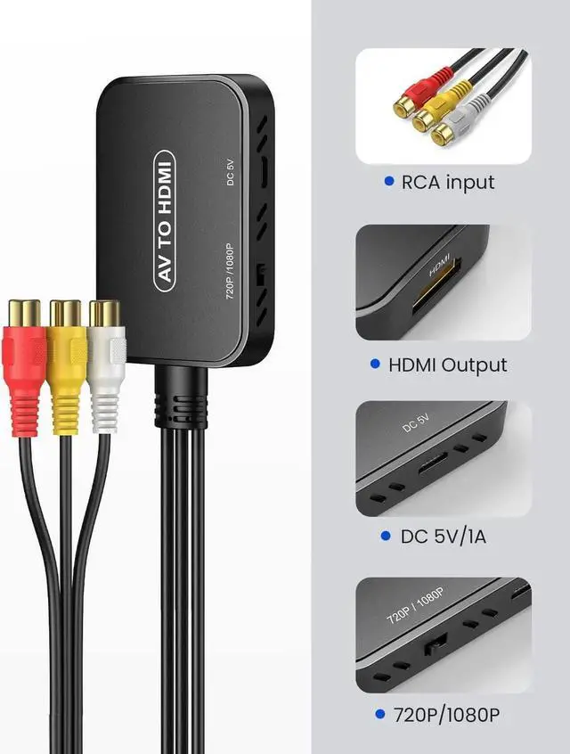 HDMI Converter: This RCA to HDMI adapter can convert analog RCA composite input to HDMI 1080P (60HZ) output you can watch old equipment sources on smart TV or monitor which can bring back your childhood memories. Long RCA and