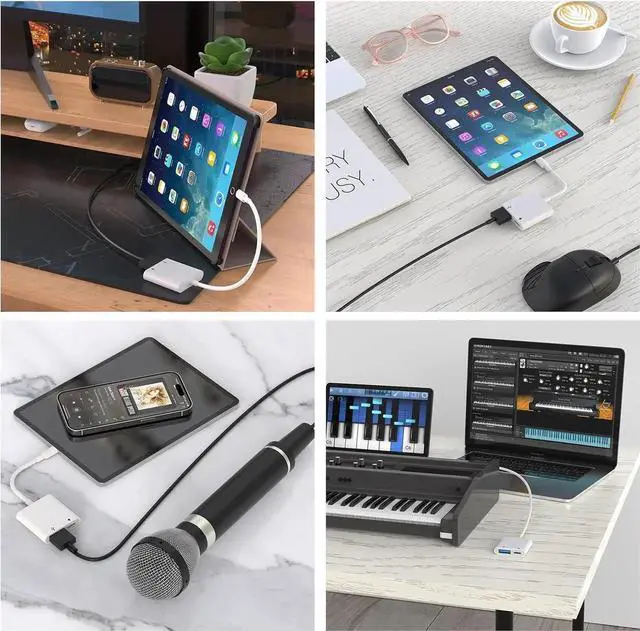 Excellent Office Performance This iPhone to USB adapter light and reliable short cable better performance. with ipad to usb adapter you can directly plug the PC keyboard or mouse into the ipadimproving your typing speed and productivity. This iPhone to USB adapter supports Hard disk drive other USB peripherals like hubs/USB flash drives/cameras/guitars/microphones/MIDI keyboards/digital pianos/mouse etcWide Compatibility The usb adapter for ipad supports standard photo formats including JPER and RAW and SD or HD video formats including H. 264 and MPEG-4. Compatible with iPhone 14/14 Plus/14 Pro/14 Pro Max/13/13 mini/13 Pro/13 Pro Max/12/12 mini/12 Pro/12 Pro Max/11/11 Pro/X/XS/XS Max/XR/8/8 Plus/7/7 Plus / 6s/6s Plus/6/6 Plus/SE and iPad Air / Mini / Pro.