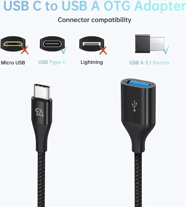 USB On-The-Go: Teleadapt USB OTG adapter. Connect standard USB A enabled devices and peripherals (Camera USB hub flash drives USB card readers and more) to USB Type-C-enabled devices such as smartphones laptops and tablets that support USB On-The-GoSuper