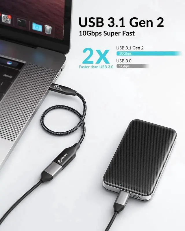 USB On-The-Go- This USB C to USB A OTG adapter enables you to connect keyboards mouse game controller flash drive hub and other USB devices to your smartphone tablet or laptops with USB-C ports. With USB C to USB adapter you can sync charge and transfer data from your USB devices. 10 Gbps Super Speed- The usb 3.1 Gen2 type c adapter is designed for high speed data transfer up to 10 Gbps (1050MB/s) 2x faster than USB 3.0. It can sync photos videos and musics in seconds. Support QC 3.0 up to 15W (5V/3A) fast charge.
