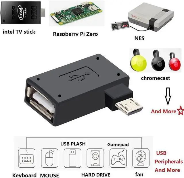 Micro USB 2-in-1 OTG Adapter for Add on any USB peripherals such as keyboards mouse flash drives external hard drives USB card readers USB ethernet adapter game controllers or whatever to your Host devices. (not for smart phones or tablets). Compatible with the most popular streaming and media devices Fires Stick (2nd Gen 3rd Gen ) Even fire stick 4K MAX