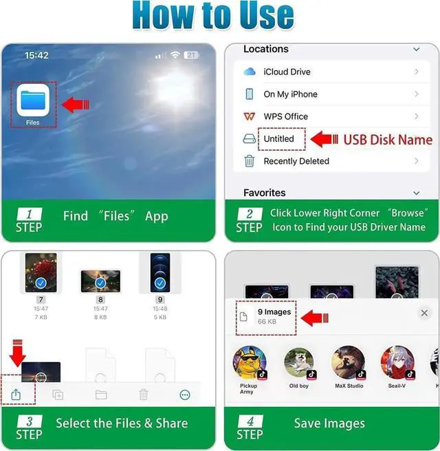 Under folder: DCIM. The iPhone 7 and later models can read 4K video. Supports OTG cable function you can sync charge and transfer data from your USB devices.