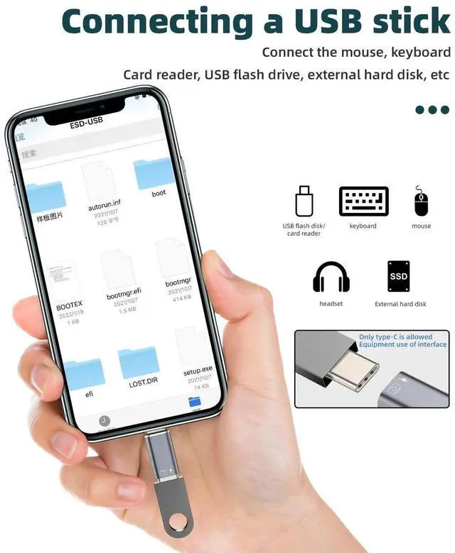 OTG FunctionPlease note: We use the latest chip. The adapter can not only charge but also has the functions of audio and OTG data. You can use it to connect the USB stick with USB - C interface or the USB - C headset! Plug and Play not require an application you can import & export photos / video / files ( Word / PPT / Excel ) by open the 'Files'. Using a USB C to iPhone adapter you can copy beautiful scenery and cute people photos and videos to iPhone and iPad.