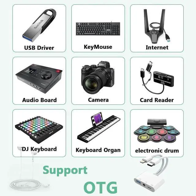) at a transfer speed of 480 Mbps / 5G bps It also supports connecting USB peripherals such as U disk U disk USB hub USB microphone USB camera electric piano keyboard mouse music keyboard PAD speakers etc. This iPhone USB Camera and 3.5 mm AUX headphone adapter equipped with small size compact design easily slips into a backpack purse or pocket. Any question of the product please do not hesitate to contact us in timeUpgraded multifunction compact and portable design powerful and easy to carry. Super Light Weight and Compact size for you to carry around.
