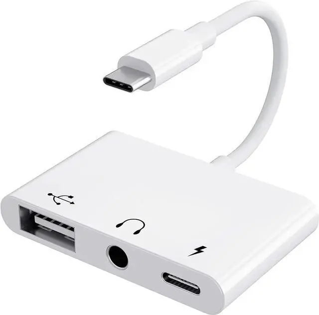 Efficient 3-in-1 USB C to USB AdapterThis usb c to usb adapter with a USB OTG port a 3.5 mm headphone jack and a usb-c fast charging port. Supports multiple ports working simultaneously so you can charge your device while making calls listening to songs or transferring files. The usb c usb adapter is compatible with most usb-c android Phones iPad Pro tablets and laptops. Lightweight stylish type c to usb adapter is the best choice for home/office/travel.? Multi-function USB C OTG AdapterThis usb c to usb adapter supports transferring files to your usb-c devices (such as Excel Word Txt PDF MP3 MP4 JPEG RAW and more) transmission speed is 480 Mbps / 5G bps.