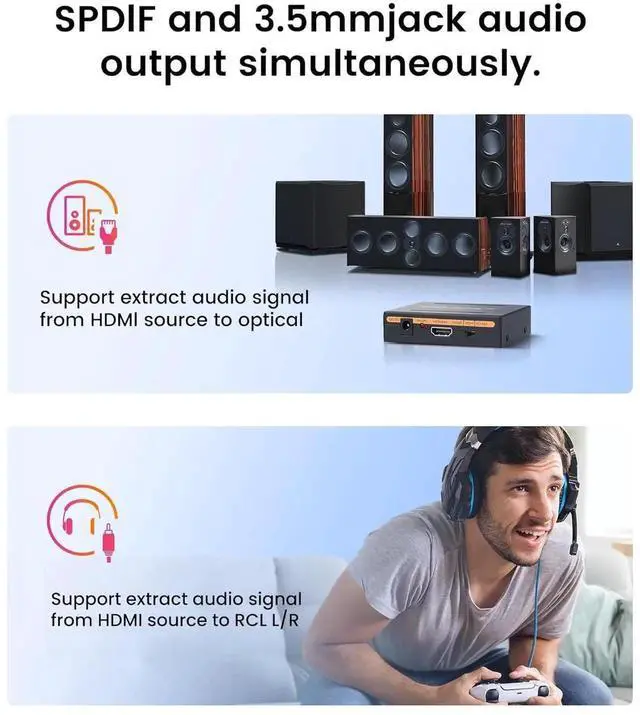 (Note: This HDMI sound extractor does not support ARC. Search for ASINB07H94D77V with ARC function )4K High