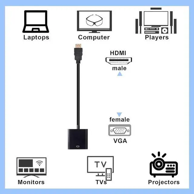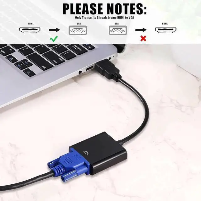 VGAHigh Compatibility: these HDMI to VGA adapter cables can support different HDMI versions such as HDMI 1.1 / 1.2 / 1.3 / 1.4 and more devices that have HDMI ports; You just need to put the HDMI to VGA adapter to the corresponding equipment then it will convert the HDMI digital signal to VGA analog signalEfficient and