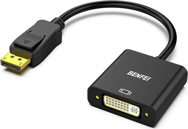 COMPACT DESIGN - The compact-designed portable Benfei DisplayPort to DVI adapter connects a computer desktop laptop or other devices with DisplayPort port to a monitor projector HDTV or other devices with DVI port; Tuck this lightweight gadget into your bag or pocket to do a business presentation with your laptop and projector or extend your desktop screen to a monitor or TV; A DVI cable is required. SUPERIOR STABILITY - Built-in advanced IC chip converts DisplayPort signal to DVI signal; It is NOT a bi-directional converter and cannot transmit signals from DVI to DisplayPortINCREDIBLE PERFORMANCE - The DisplayPort male to DVI female converter supports resolutions up to 1920x1080@60Hz (1080p Full HD) including 720p 1600x1200 1280x1024 for high definition monitors or projectors; Gold plated DisplayPort connector resists corrosion and abrasion and improve the signal transmission performance; Molded strain relief increases cable durabilityLATCHES