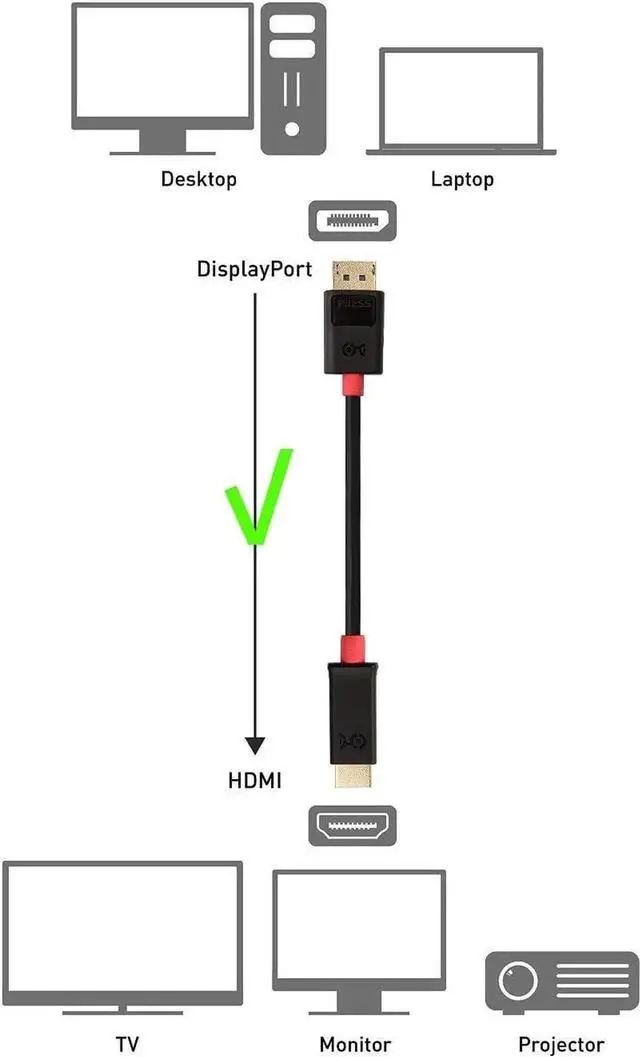HDMI DisplayPort cable connector with latches provides a secure connection with a release button that must be depressed before unplugging to prevent accidental disconnectionsHDMI to Display Port cable is compatible with 4K monitors from BenQ HP Envy LG Electronics Viewsonic and 4K UHD TVs from Seiki Sony and Vizio