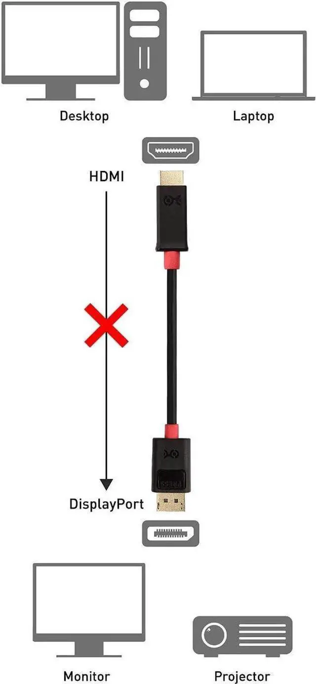 High bandwidth HDMI to DisplayPort cable delivers video with brilliant detail and amazingly accurate color from a DisplayPort equipped Ultrabook PC computer or graphics card to a 4K capable UHD TV monitor or projector with HDMI input4K resolution support up to UHD 3840 x 2160 @ 30 Hz with this Display Port to HDMI cable; HDMI to Display Port supports High Definition Audio for a full range of audio types including SACD DVD-Audio DTS-HD Master Audio and Dolby TrueHD; High performance HDMI to DP cable operates in one direction from a computer laptop of graphics card to a display with HDMI (not the reverse) Windows compatibleDisplay to HDMI cable for connecting a computer to a UHD TV for video streaming or gaming; DisplayPort to HDMI cable connects and configures your 4K monitor for an Extended Desktop or Mirrored Displays; No external drivers or power are required for this DisplayPort HDMI cableDP to HDMI cable combines gold-plated connectors with molded strain relief resist corrosion provide durability and improve the signal transmission; Foil and braid shielding provides protection against EMI and RFI noise.