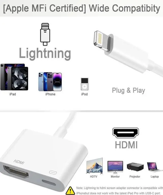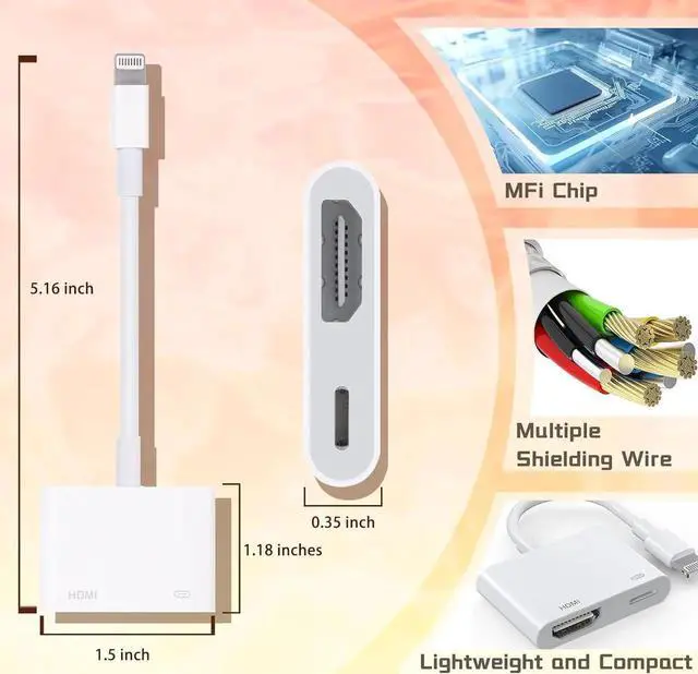 ![Alt view image 6 of 7 - JAENFONG Lightning to HDMI Adapter [ MFi Certified] HDMI Digital AV Adapter 1080P Sync Screen Cable with Charging Port Compatible with iPhone on TV/Projector/Monitor No Power Needed](https://c1.neweggimages.com/productimage/nb640/C280S25092405375EAD.jpg)