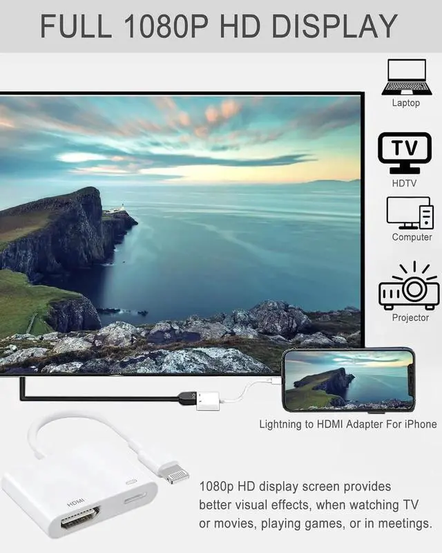 ![Alt view image 4 of 7 - JAENFONG Lightning to HDMI Adapter [ MFi Certified] HDMI Digital AV Adapter 1080P Sync Screen Cable with Charging Port Compatible with iPhone on TV/Projector/Monitor No Power Needed](https://c1.neweggimages.com/productimage/nb640/C280S25092405375R65.jpg)