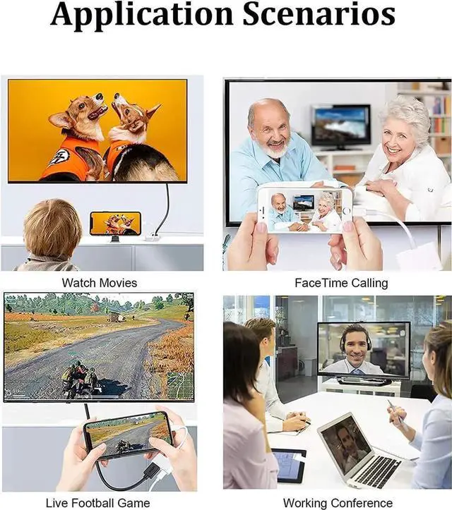 iPhone to HDMI Adapter to TV The lightning to HDMI adaptersupports mirroring of what is displayed on your device screen including apps presentations websites slideshows and more to your HDMI enabled HD TV display projector or other compatible display in up to 1080P HD. Provides a superb visual feast in everyday life and work. Widely Compatibility HDMI to iPhone adapter for TV is compatible with iPhone 14/14 Plus/14 Pro/14 Pro Max/13/13 Mini/13 Pro/13 Pro Max/12/12 Mini/12 Pro/12 Pro Max/11/11 Pro/11 Pro Max/SE 2020/XS/XS Max/XR/X/8/8 Plus/7/7 Plus/6s/6s Plus/6/6 Plus/5 Support iOS 10.3 above. Plug and Play No Need Install Any Driver/App & Personal Hot spot or WIFI No Need to adjust the Mirror of iPhone/iPad easy to use Plug and Play.