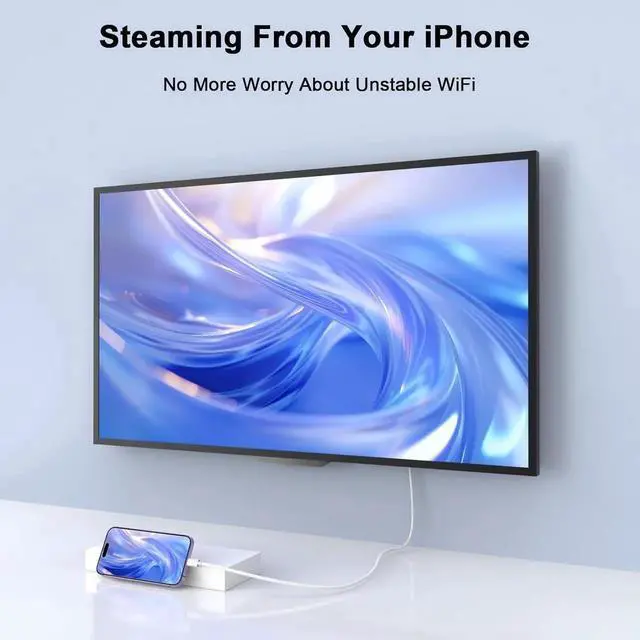 Support for all iOS versions ensures a seamless experience across a wide range of devices. Delay-Free Performance The iPhone 14 to HDMI cable cord is equipped with an MFi certified chip ensuring stable video output. Enjoy content stress-free on a large screen without experiencing delays. This lightning to HDMI cable has triple tin shielded in a double braided premium nylon with galvanized corrosion resistant connectors for guaranteed top tier image & sound. Whether you're presenting gaming or streaming videos our adapter delivers reliable and lag-free performance. Easy to Use Plug and Play With our iPhone HDMI adapter connect your iPhone to TV directly without needing an extra HDMI Cable.
