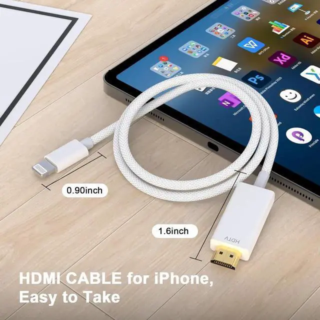 Lightning to HDMI Cable for TV Elevate your viewing experience with our Lightning to HDMI cable supporting a resolution of up to 1080P (HD). Mirror what's displayed on your iPhone or iPad screen including images movies games apps presentations websites slide shows and more on your HDMI-equipped TV display projector or other compatible screens. Enjoy stunning visuals with crystal-clear clarity. Universal Compatibility Ensure compatibility with multiple lightning devices using our hdmi to lightning cable for iPhone. Compatible with iPhone 14/14 Plus/14 Pro/14 Pro Max/13/13 Pro/13 Pro Max/13 Mini/12/12 Pro/12 Pro Max/12 Mini/11/11 Pro/11 Pro Max/SE 2020/XS/XS Max/XR/X/8/8 Plus/7/7 Plus/6s/6s Plus/6/6 Plus/5/5S/5C/SE iPad iPod and other devices with a Lightning interface.