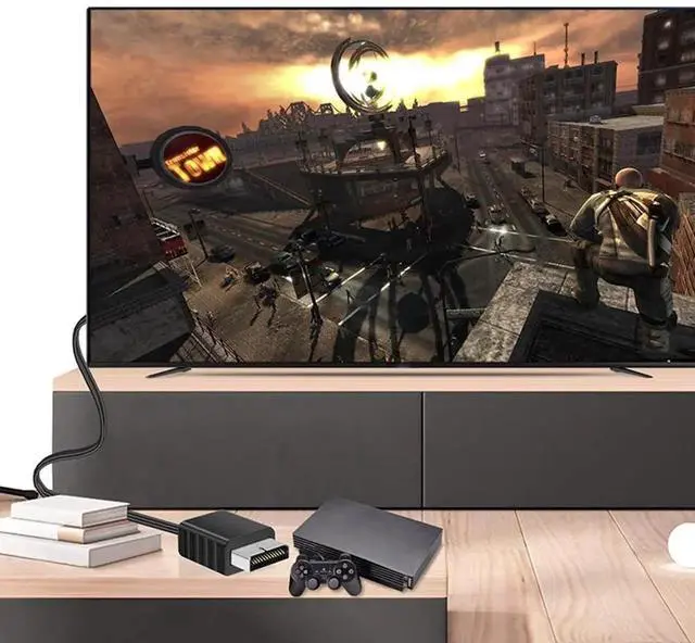 PS1/PS2 to hdmi adapter converts PS1/PS2 signals to hdmi signals outputting audio and video in full digital hdmi format (720p/1080P) supporting PS1/PS2 (pal/ntsc) display modes. With just one HDMI cable you can convert the signal from your PS1/PS2 into digital audio and video signals for transmission to your TV/monitor/projector enhancing picture quality. Adds HDMI output to the PS1/PS2 console. Bring your old PS1/PS2 back to life on a newer TV and experience these games again. No driver installation no need for any power supply lightweight and portable plug and play. The adapter HD converter cable shows no delay and the all-in-one design makes it more convenient for customers to use.