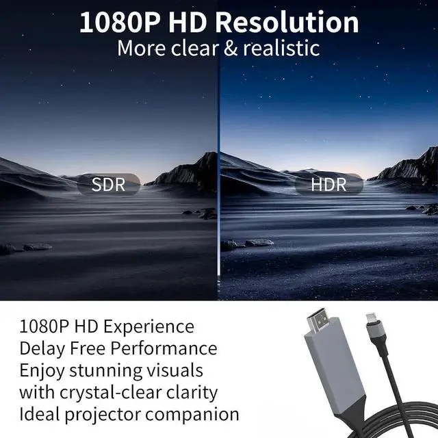 Cable Adapter: The Lighting to HDMI cable connects the Phone to the HDMI adapter with TV which is 6.6 feet long and is the perfect solution for a seamless connection between the Phone and a TV projector or monitorSupport 1080P