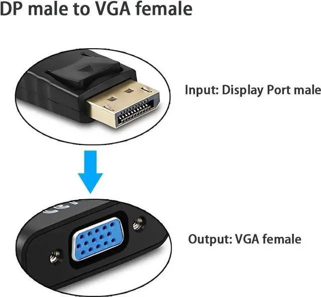 Incredible Performance: The DisplayPort male to VGA female converter supports video resolutions up to 1920x1080@60Hz (1080p Full HD); Gold plated DP connector resists corrosion & abrasion and improves signal transmission performance; molded strain relief increases cable durability. Compact Design- - Take this lightweight portable DisplayPort to VGA adapter into your bag or pocket to make business presentation or extend your workspace to increase productivity. Easy to Use- - Plug and play no driver needed comes with premium chip converts dp port to VGA analog signal; It is NOT a bi-directional adapter and cannot transmit signal from VGA to display port.