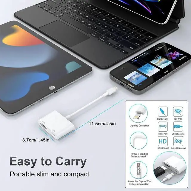 ![Alt view image 5 of 6 - JAENFONGLightning to HDMI Adapter for iPhone[ MFi Certified] Digital AV Audio Dongle 1080P Sync Screen Cable with Lightning Charging Port for iPhone 14/13/12/11/ X/ 8/7/ iPad on HDTV/Projector/Monitor](https://c1.neweggimages.com/productimage/nb640/C280S2509240DB7WE84.jpg)