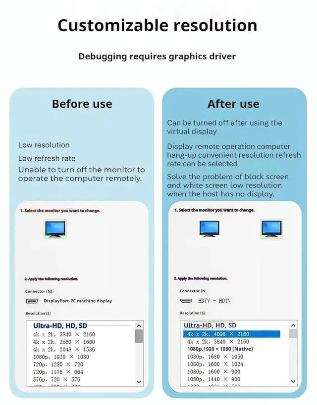 High-Resolution Support: Runs smoothly with resolutions up to 4K (4096x2160) and 2160P ensuring crisp and vibrant visuals.