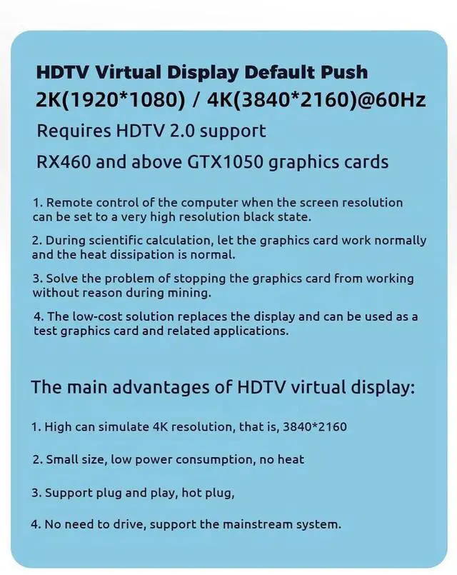 Versatile Connectivity: This adapter features an HDMI interface and analog plug for seamless 4K display emulation on various devices.