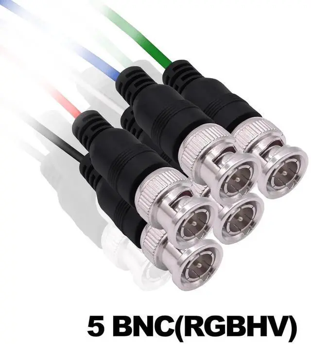 BNC Cable: This HD15 VGA to 5 BNC adapter cable also called RGBHV component cable consists of five independent input units: R G B H and V. These 5 internal coaxial cables support the highest resolution of most displaysUses: VGA to 5 BNC cable for high-end monitors with 5 BNC inputs namely RGBHV signals to improve display clarity. BNC cables can be used to connect PCs cable boxes sound mixers and other equipment as part of a professional video setup. Only applicable to RGBHV interface on display devicesBNC