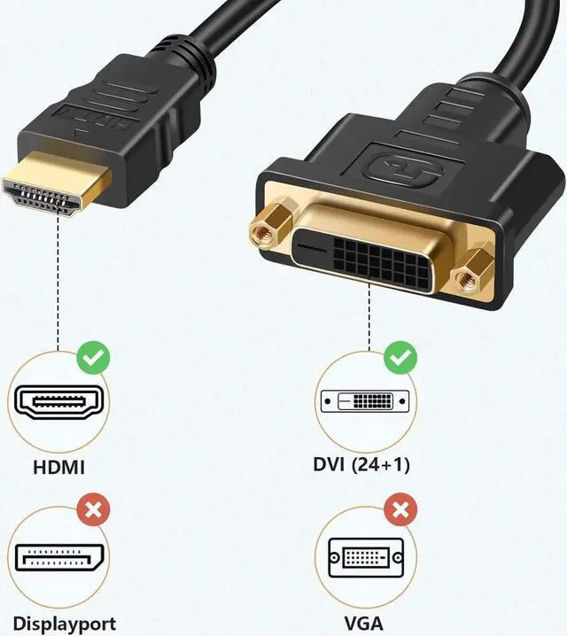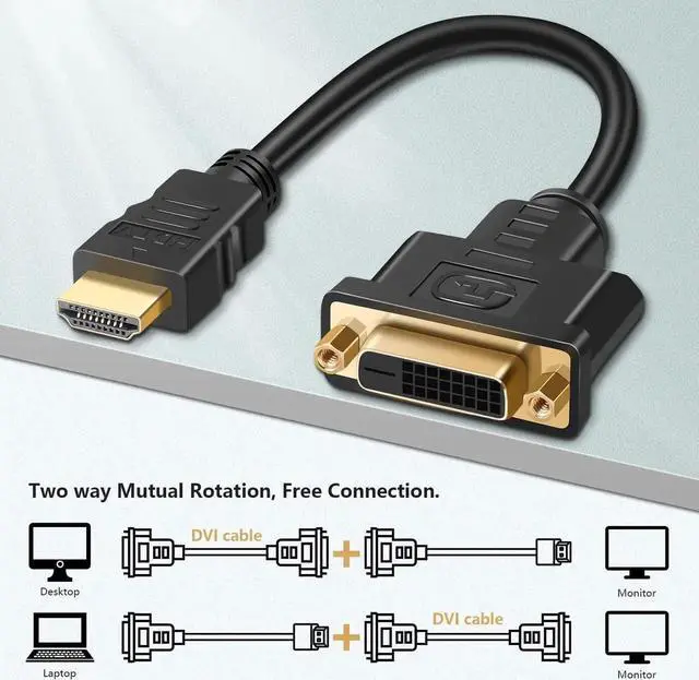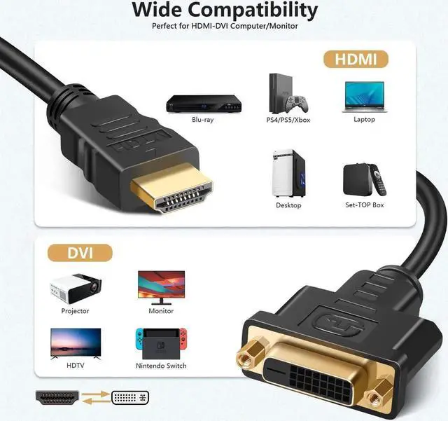 DVI Adapter: HDMI Male to DVI Female Cable connects source devices with HDMI interface (such as Latop Xbox Desktops Blu-ray Playe) to DVI-equipped HDTV Monitor Projector; or DVI-equipped source devices to HDMI-enabled display devices. It reduces the strain on the HDMI port while connected to a DVI monitor and ensures that the other ports are still accessible1080P Full