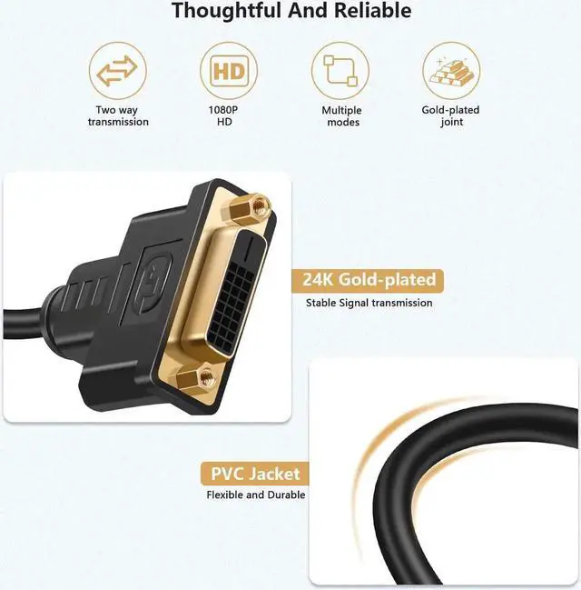 Reliable & Durable: HDMI to DVI Male to Female Adapter Cable is made of high purity copper cores with stranded wire technology construction to reduce signal cross-talk and ensure error-free signal transmission; Durable and flexiable PVC jacket is not easy break 24K gold-plated full metal connector is corrosion-resistant not easy to loose and ensure stable transmission.