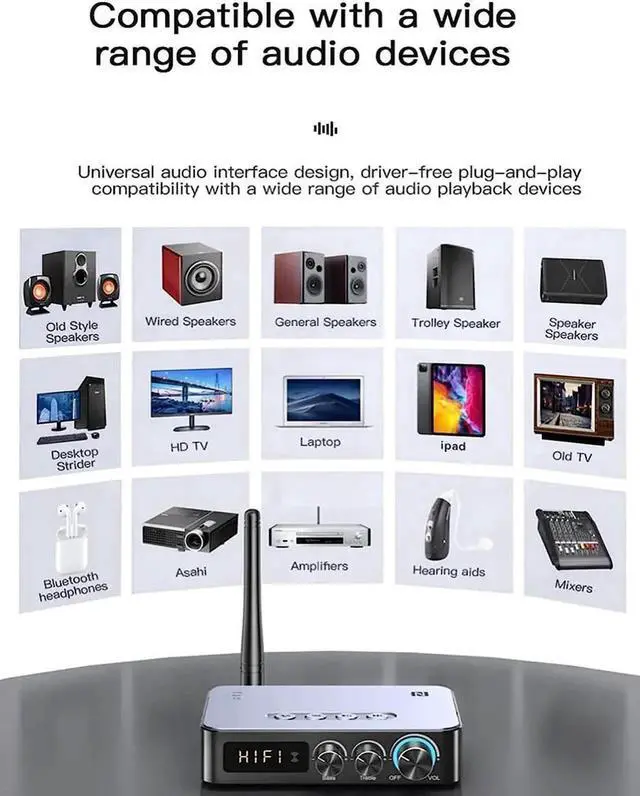 Two-in-one Bluetooth receiving (RX) and Bluetooth transmitting (TX).