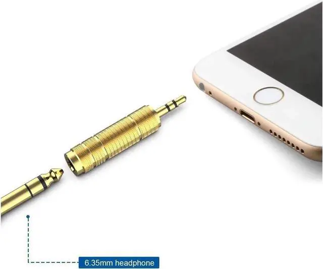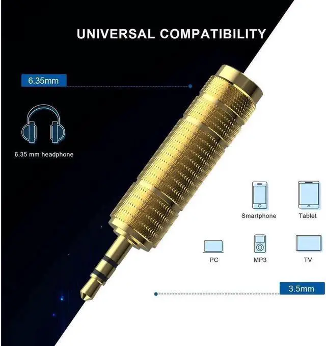 3.3. 5mm male to 6.35 mm female adapter: suitable for a 3.5 mm (1/ 8 inch) stereo port to accept a stereo cable (such as 6.35 mm headphones) with a standard 6.35 mm (1/ 4 inch) plug.