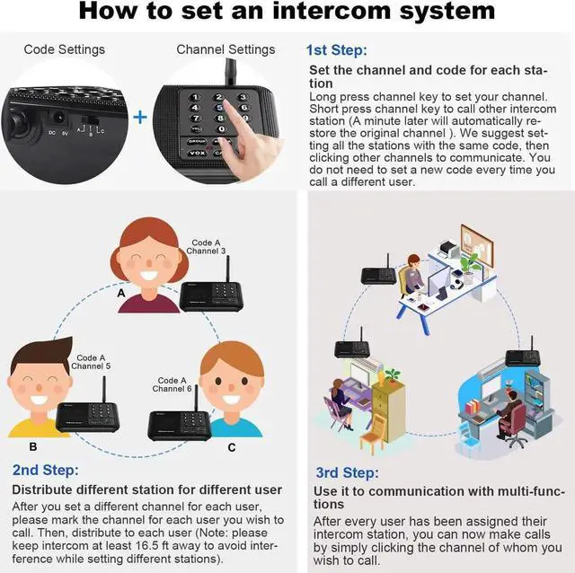 - [ 10 Channel and 3 Digital Code ] 10 channels and 3 digital codes in a secure wireless intercom system. Features an enhanced anti-interference and can work with other intercoms with the same digital channel code!