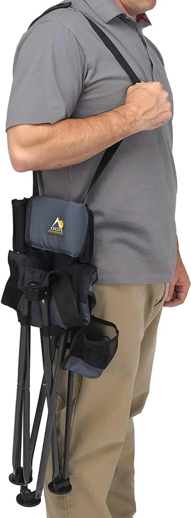 Easy Storage: Shoulder strap with Auto-Fold Technology allows for easy folding and carrying; Simply pull up on the carry strap to collapse the folding camp stool