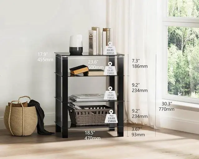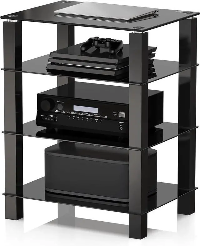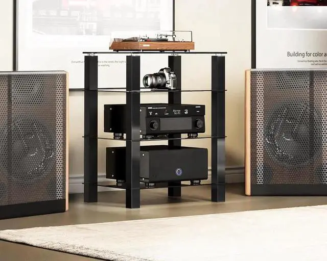 AESTHETIC DESIGN: This av stand are designed in a modern minimalist style with smooth lines. As a result, the equal spacing between the tiers of the stereo cabinet organizes items while ensu a good visual effect