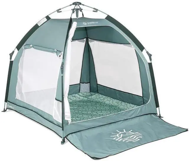 The Go With Me® Villa Portable Tent/Playard, in all new limited edition nature inspired fashion, is the perfect portable retreat for any adventure! Whether you're headed to Grandma's house, the beach, camping, or your very own backyard, your little one is sure to enjoy this travel friendly retreat. It's the perfect companion to give you and your children a break from the sun where you can enjoy snack time, mealtime, playtime, or an enclosed naptime. The Villa is also a great addition to any playroom where it makes a wonderful enclosure or playhouse. Wherever you choose to use the Villa, relax comfortably knowing that this tent/playard can be set up fast and easy in practically one movement.