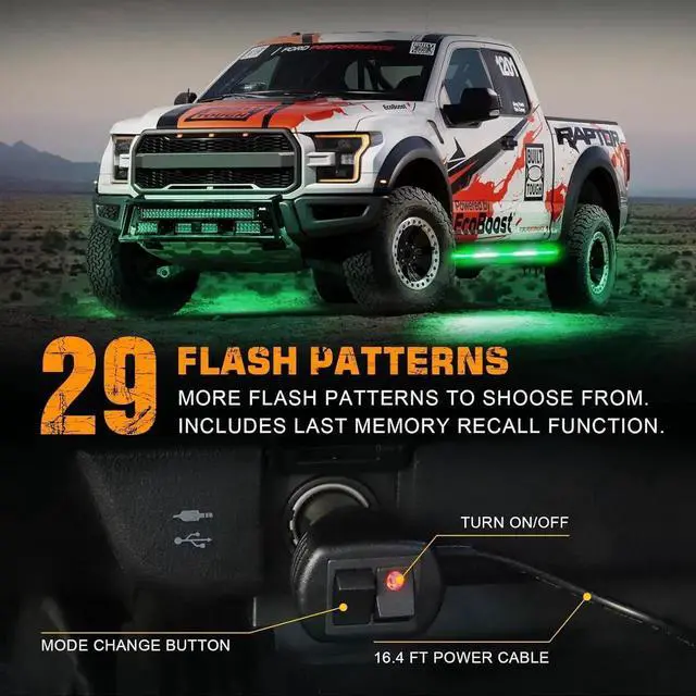 - QUICK RESPONSEPLUG AND PLAY. Control the strobe patterns through the 12V cigarette lighter switch. 29 different flashing patterns and last memory recall function, very handy for late night calls, first responder, storm work or danger.