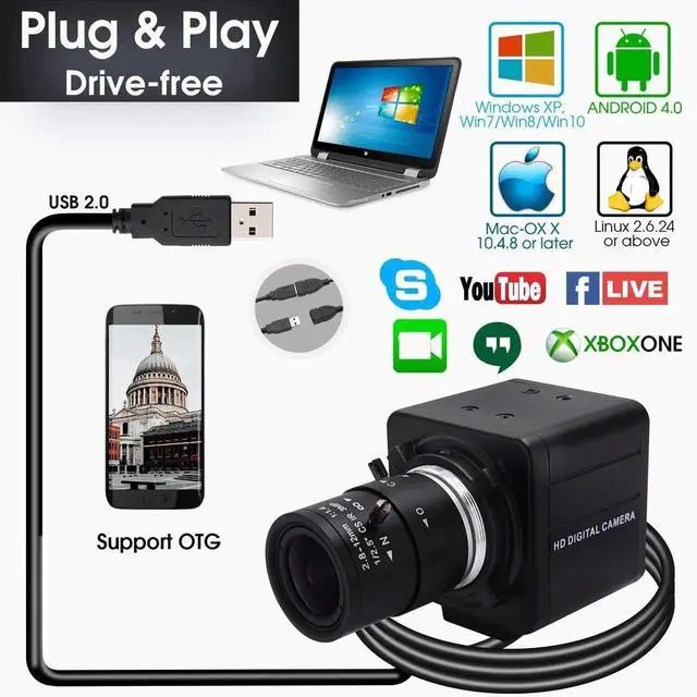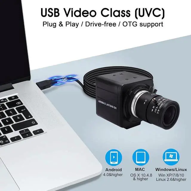 - Plug & PlayDrive free USB webcam is very easy to set up, just need to plug the usb port of the camera into computer and running the video software to make video display and recording. Compatiable with Windows XP/ Vista/7/8/10, Linux with UVC (above linux - 2.6. 26), MAC-OSX 10.4. 8 or later, Android 4.0 or above with U