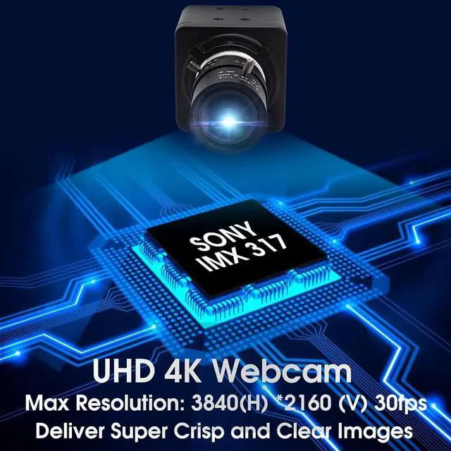 Sony IMX317 Image Sensor With advanced Sony IMX317 image sensor, this 4K USB camera can provide crystal clean images. Special designed for professional video production, surveillance system manufacturing, industrial vision. Perfect for high level video system for personal or industrialfalseCamera with IR-Cut Filter4K ultra HD camera with max resolution 3840x2160, high definition and low color reproduction deviation, built-in with IR-cut filter@650nm provides HD picture and video capture with real ture color, keep the purity and high color saturation of imagesfalsePlug & PlayDrive free USB webcam is very easy to set up, just need to plug the usb port of the camera into computer and running the video software to make video display and recording.