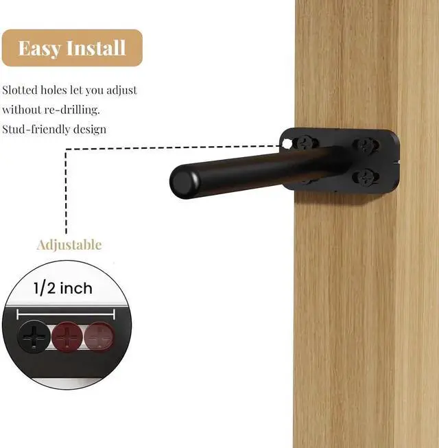 Adjust Brackets for Precise AlignmentThese floating shelf brackets feature an adjust elliptical track for precise alignment with American standard stud. If screws arent aligned the first time, easy adjustments can be made without re-drilling, prnting wall damage. This feature guarantees secure, sturdy mount, making installation straightforward for both beginners and experienced DIYers.