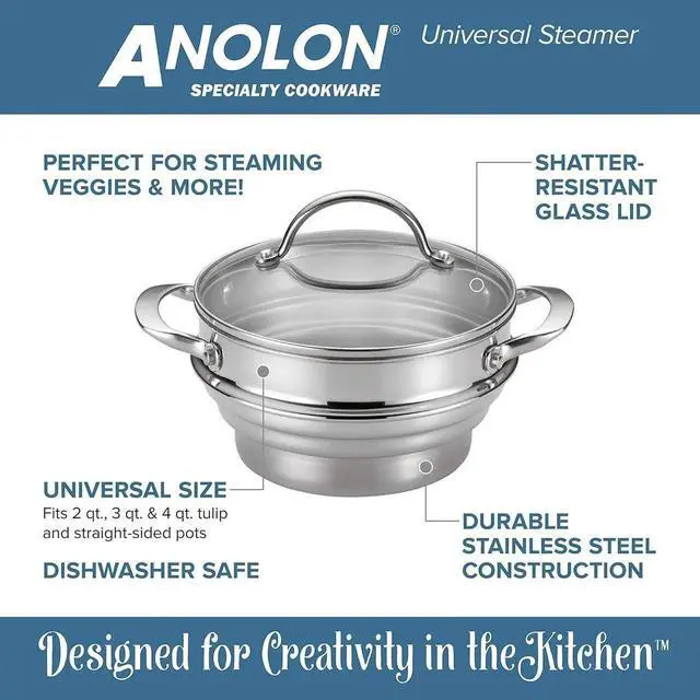 Enjoy the meal and savor the journey with the brilliant shine and professional-quality performance of this Classic universal stainless steel steamer insert with lid. Made from durable stainless steel, this universal insert easily fits tulip and straight-side cookware. Ideal for steaming tamales, lobster or cooking linguine for pasta night, this steamer set includes a stainless steel steamer lid to lock in heat and flavor. Oven safe to 500°F, this steamer set is also dishwasher safe for easy cleanup.