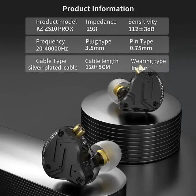 Ergonomic Design & Silicone Ear Cushions Comfort FitBased on the design of the internal structure of the ear, the sound outlet of the earphone is close to the eardrum, allowing you to enjoy your favorite music comfortably at any time when using the earphone. The in-ear design blocks external ambient noise to enhance your listening experience. What's more, the earphones feature three sizes of eartips, including S/M/L, to ensure the Comfort fit. 2Pin 0.75MM Detachable Cable & Wide CompatibilityKZ ZS10 PRO X earphone Improved recessed 0.75 mm 2Pin connector will provide durability and stability.