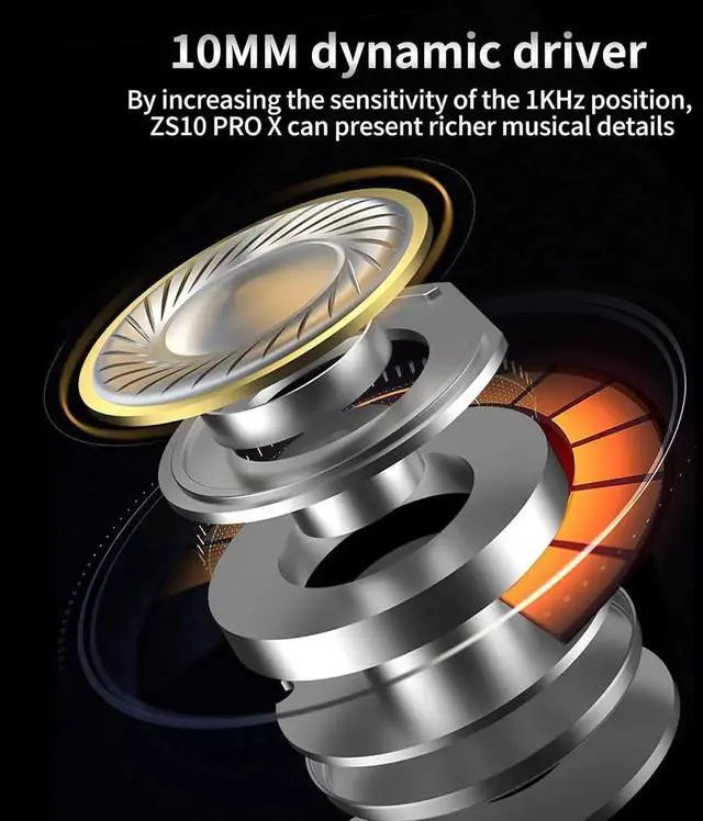 KZ ZS10 PRO X in ear headphones are specially designed for music lover, it is the good choice for a gift. - High Performance iemKZ ZS10 Pro X in ear monitor headphones adopt 4BA+1DD Hybrid Technology, This in ear earphones is equipped with 4BA+1DD which enhances the performance of mid-high frequency details, improves highs extension, crisp treble, smooth mids, heavy bass, clear and bright, and highly restored the music. Compared with ZS10 Pro headphone, zs10 pro x in ears has more powerful bass performance and treble extension ability.