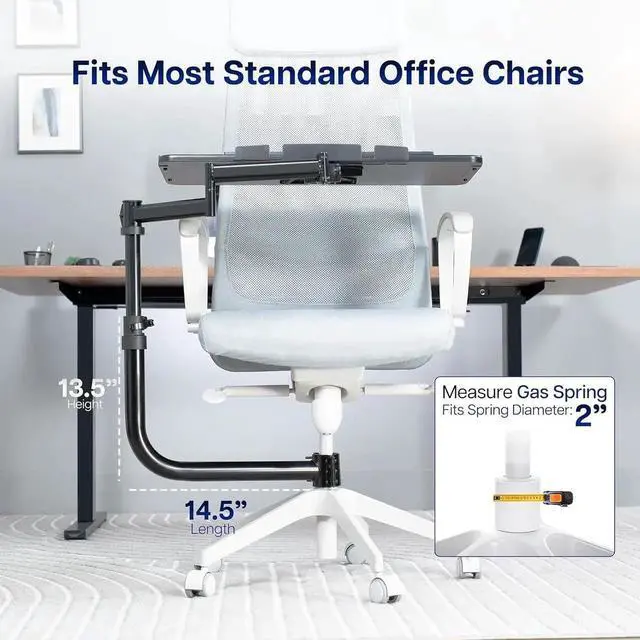 Attach a keyboard tray directly to your office chair with the Black Office Chair Mounted Premium Keyboard Tray (MOUNT-KB18CP) from! This innovative mount complements large screen and gaming setups, along with everyday computer work. Easily back away from your screen while keeping control of your keyboard and mouse. The tray features adjustable tilt and full rotation for convenient placement and comfortable typing angles, and wrist padding provides additional support. Upgrade your workstation today, and enjoy ergonomic typing angles personalized to your needs.