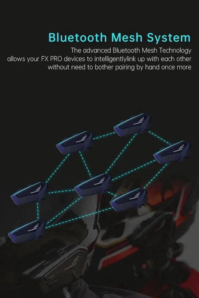 - 6-Rider Conference ModeThis motorcycle helmet bluetooth headset delivers 1200m-range intercom. Share Spotify playlists between 2 headsets while coordinating with 6 additional riders via group channel