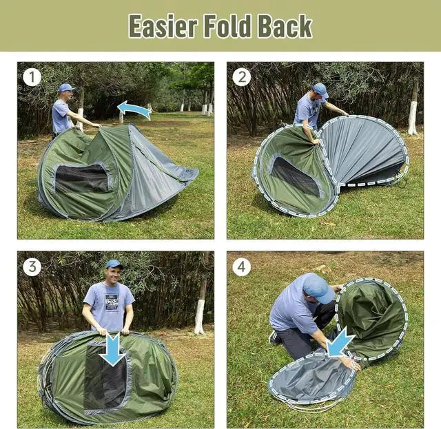 Cool Ventilation with Porch2 big doors and 2 wide windows allow the air flows and keep the instant tent ventilated well, used as a Popup Beach Tent to enjoy cool breeze. The doors can be set up with your own trekking poles (Exclude in package) or outdoor sticks to be used as a Front Porch, providing a little shade while sitting in front of tent