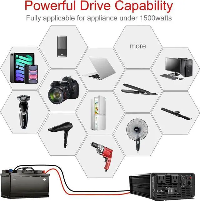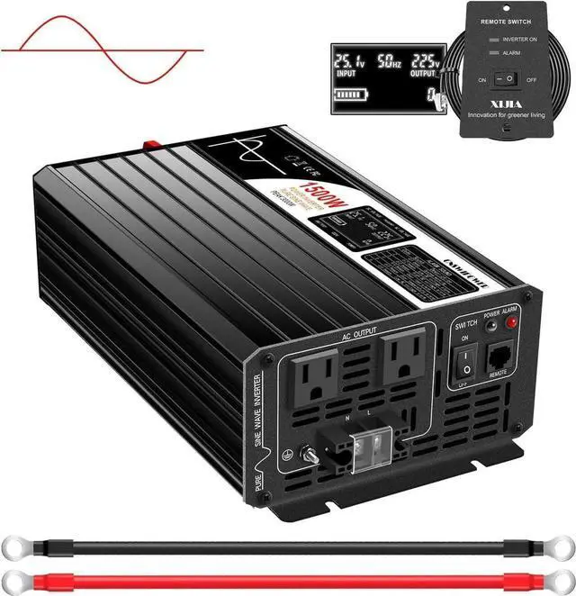 All around protections, under voltage alarm cut down protection, over voltage protection, reverse fuse protection, high volt cut off protection, Over current, Over load shut off protection, Short circuit fuses protection, Over thermal production. false- XIJIA Power InverterProvides clean pure sine wave1500W DC 12V to 120V AC continuous power. Much better than Mod (modified) sine wave. True pure sine wave inverter can provide high quality and stable output power, Less wear to protect your AC equipment more stable. It's recommended by most cordless tool manufacturer that a pure sine wave inverter is used to ensure long battery life.
