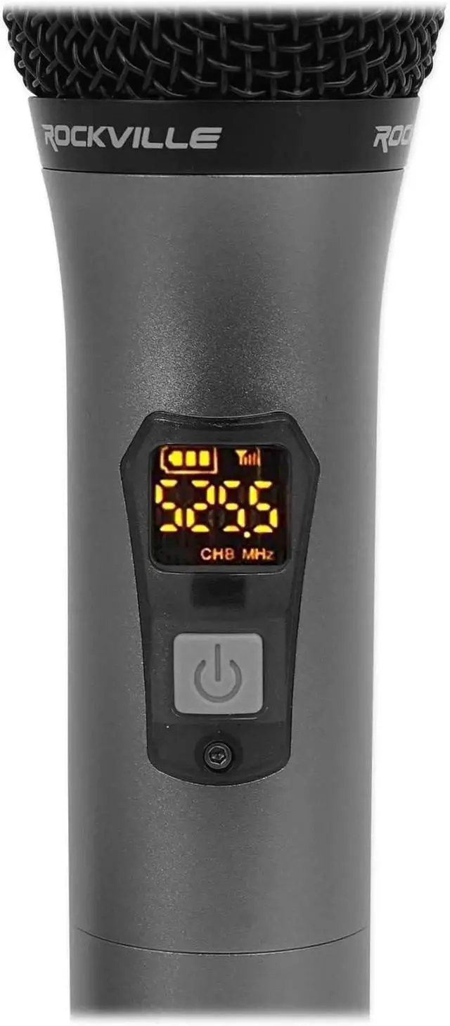 AND BATTERY LIFE: - Operates up to 200 feet with up to 10 hours of battery life (AA batteries), supporting extended performances without signal loss. falseFeatures: Rockville RWM65U dual wireless microphone system. Uhf frequency band for interference free operation. 15 selectable frequency channels (per mic) for interference free operation. Convenient channel switching at the push of a button on the mic. Built in Dual antenna fail-safe system that will automatically switch antennas if there is interference. (2) high sensitivity metal handheld Wireless UHF microphones. Rugged metal receiver with digital display that shows the frequency, the signal strength, and audio level. Microphones are dynamic unidirectional with cardioid pick-up patterns. (2) individual XLR outputs and a mixed ¼ TRS output. Dual filter design to limit feedback and interference. Individual microphone volume controls. Ergonomic microphone construction. Each mic has a digital display with battery level indicator. &Nbsp; low power consumption for longer battery life. Latest UHF digital technology, which is controlled by a central microchip that guarantees no cutouts.